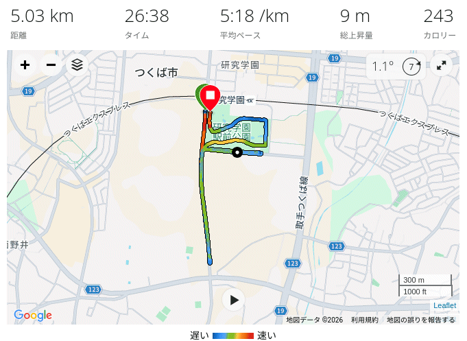 例えば『ちくせい』では、雨中の寒さの中、途中で”もう終わりにして早く帰りたいよ” とか、終始まるで諦め気分だった。だから、おそらくは加齢のせいでいつもの入りではオーバーペースなのだろうと、スローで入ることを心掛けたのだ。具体的には、最初の1キロを 5:20 くらいが良いかな?・・と。