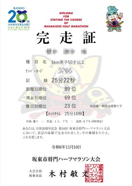 今回、完走証にはネットタイムも記録されていて嬉しかったです。だって、これこそが 5 キロの実タイムなのですから。